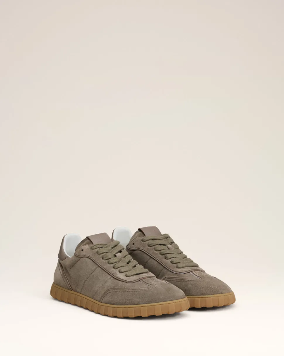 Baskets basses à lacets en croute velours.