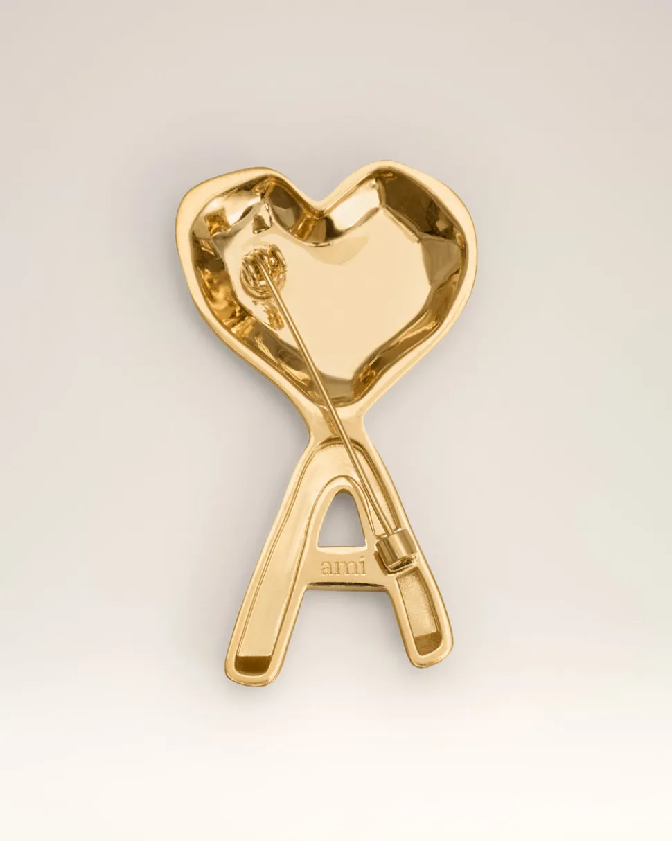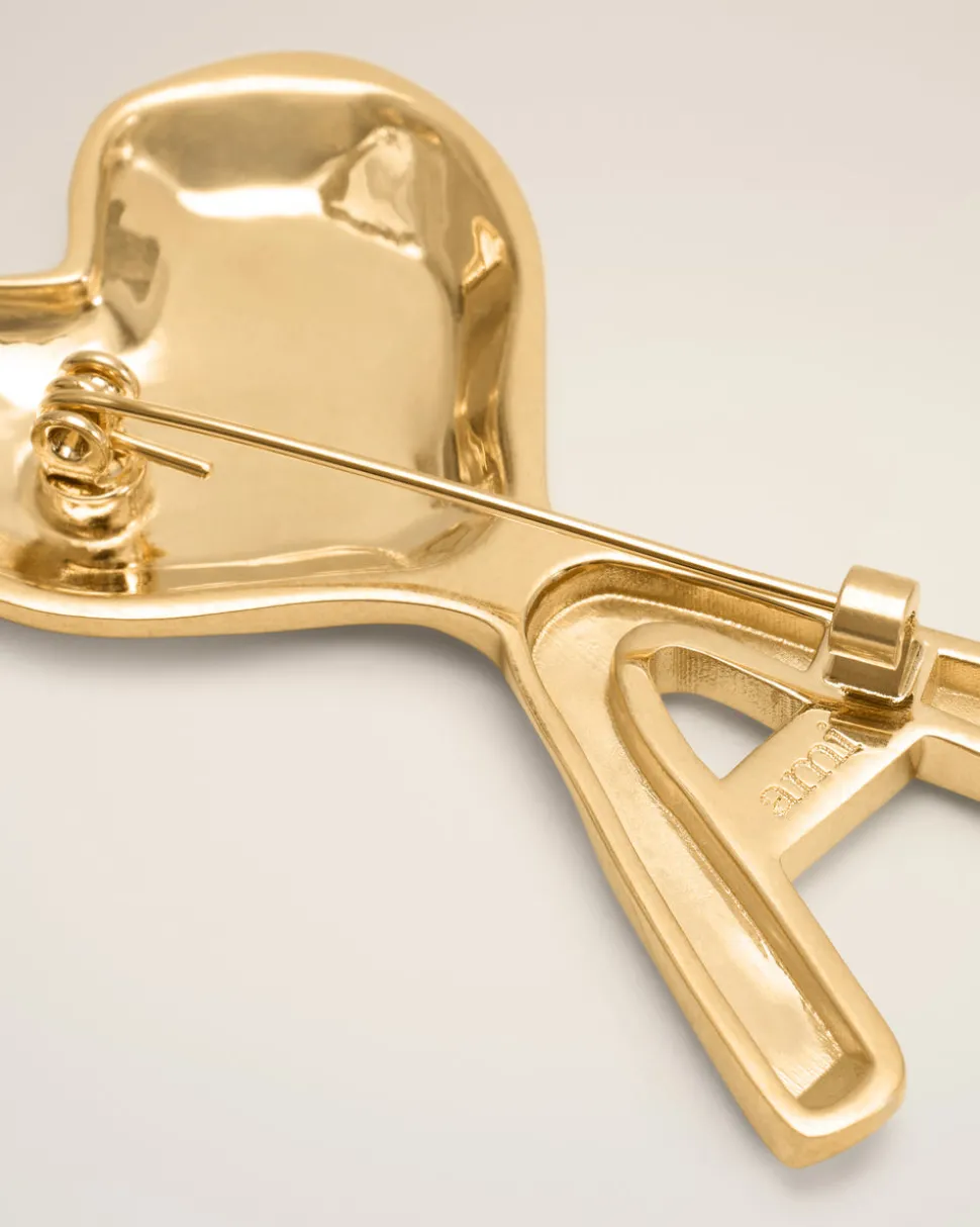 Broche martelée Ami de Coeur en laiton plaqué or.