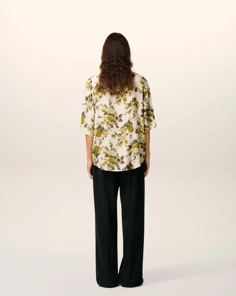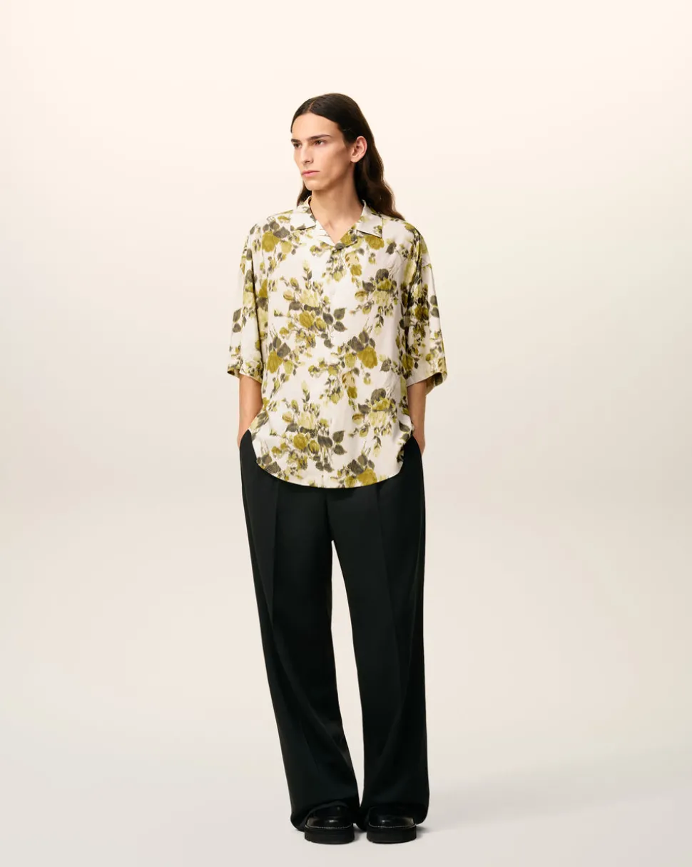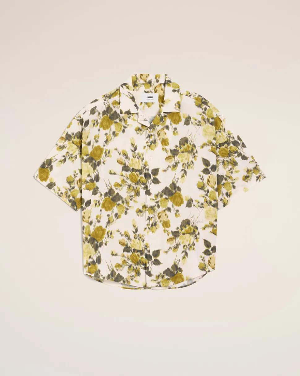 Chemise manches courtes en viscose imprimée fleurs.