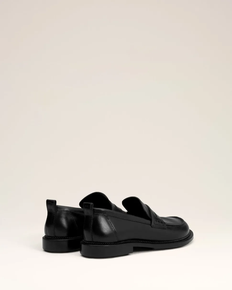 Moccassins à bout anatomique en cuir lisse tannage végétal.
