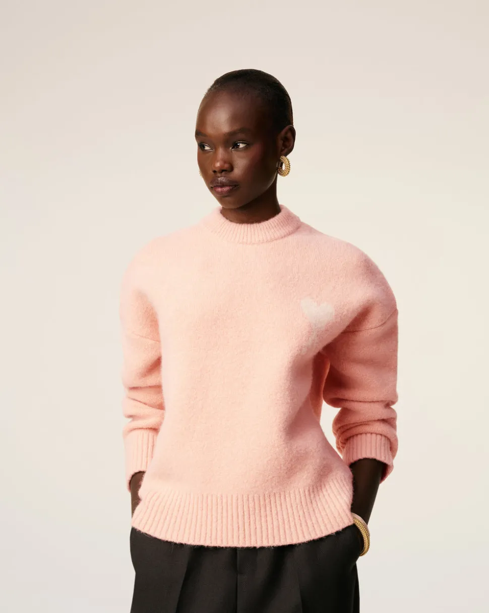 Logo Ami de Coeur tricoté en intarsia sur la poitrine