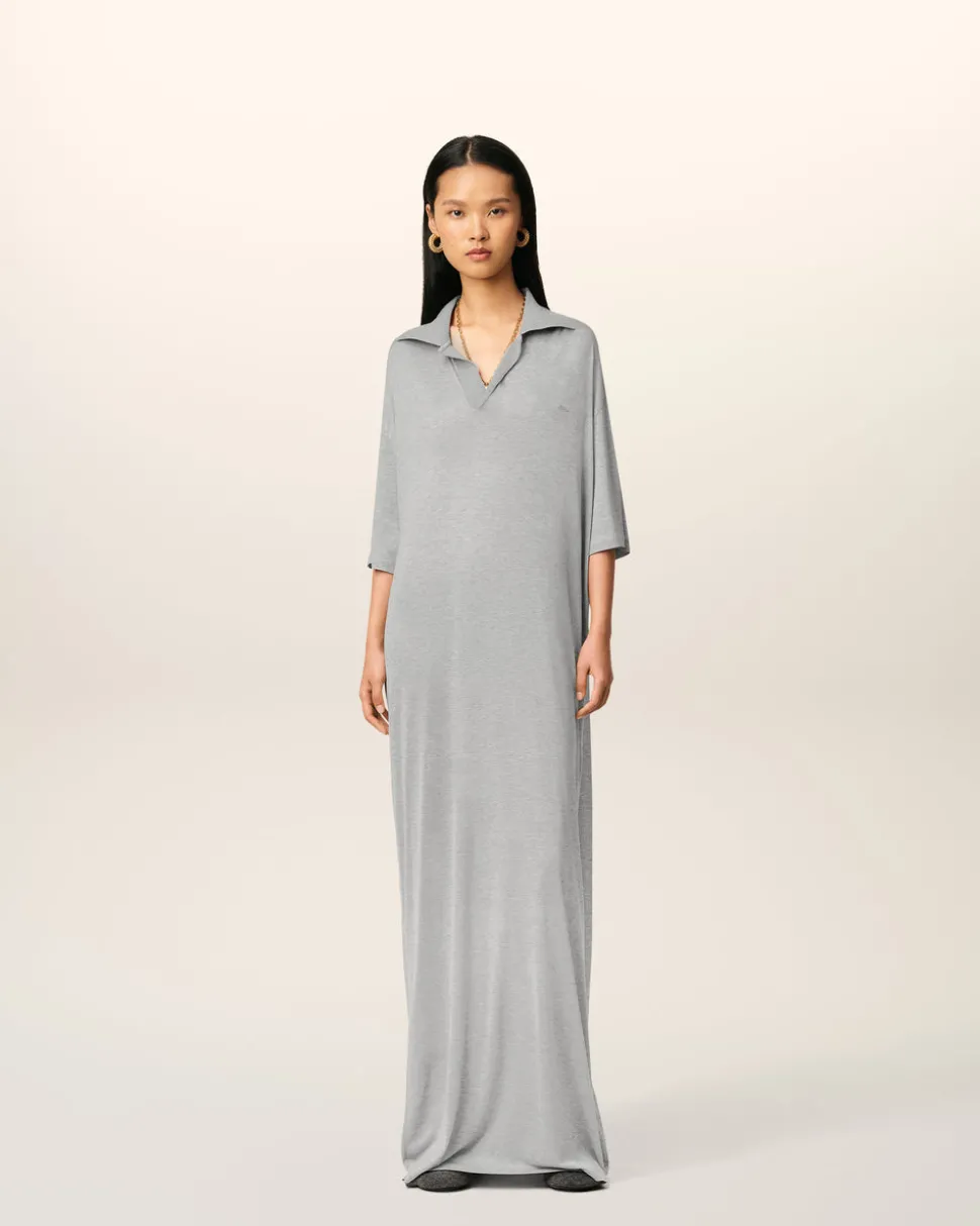 Robe polo longue en jersey mercerisé coton et soie.