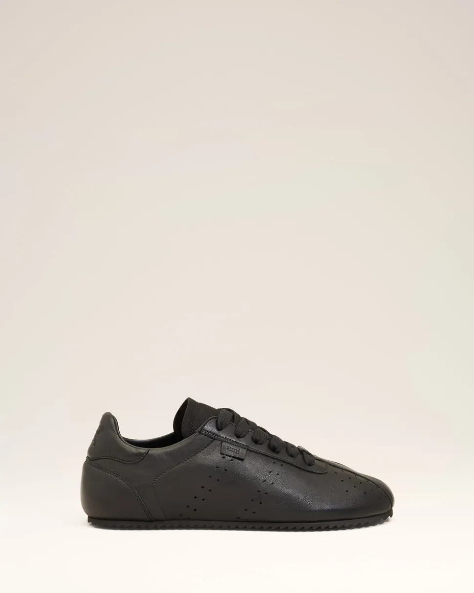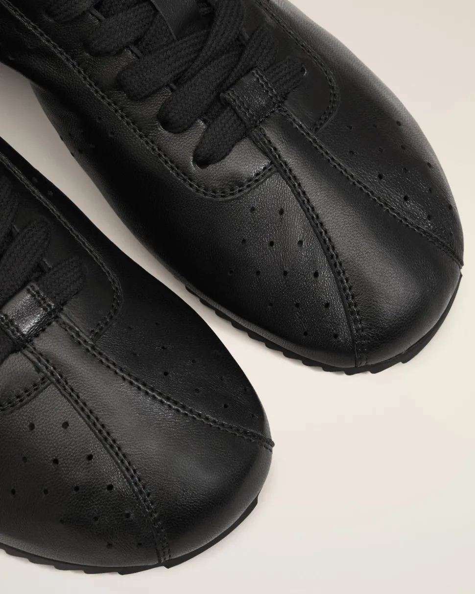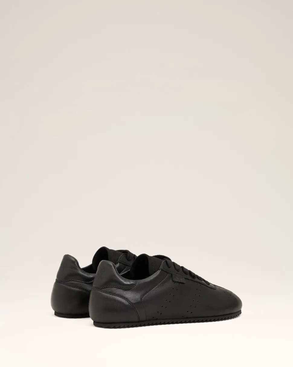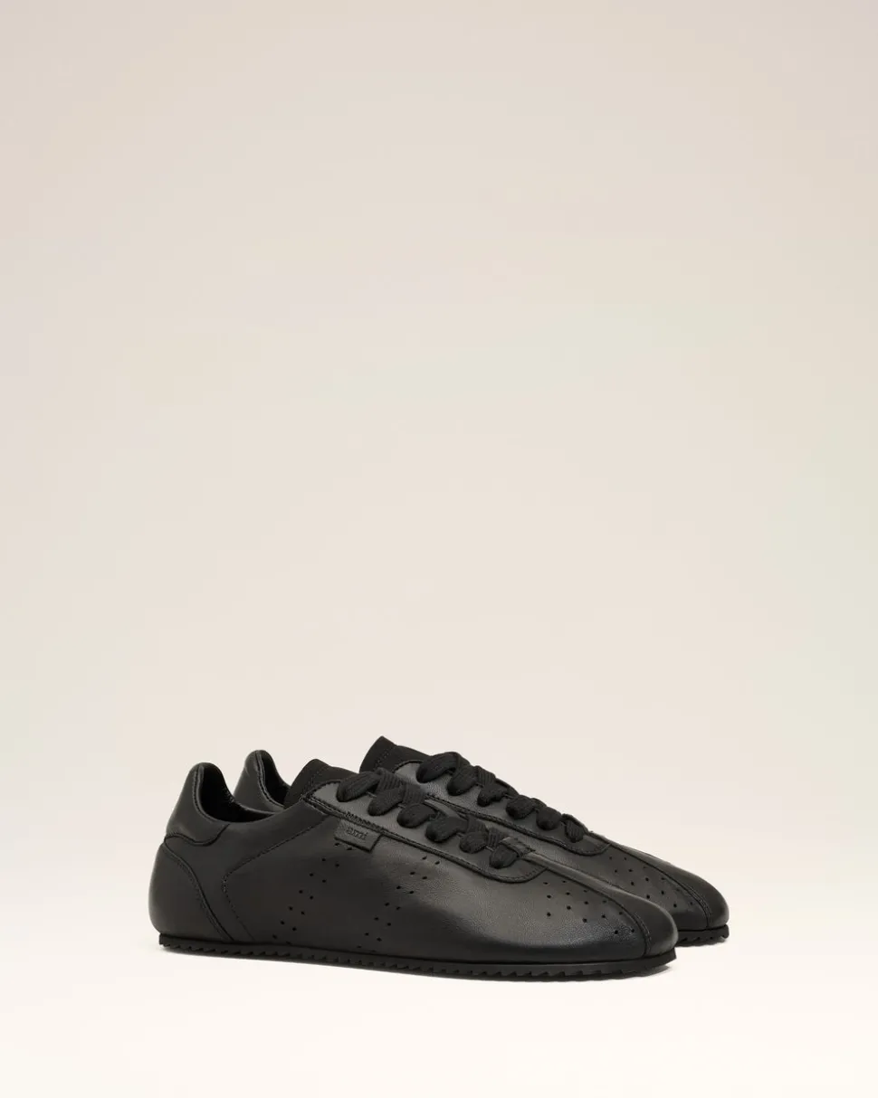 Baskets basses à lacets en cuir lisse nappa.