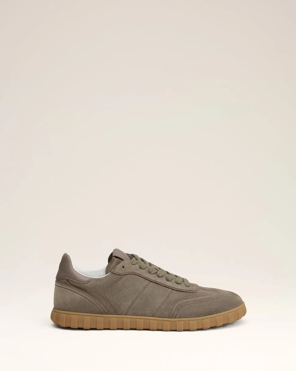 Baskets basses à lacets en croute velours.