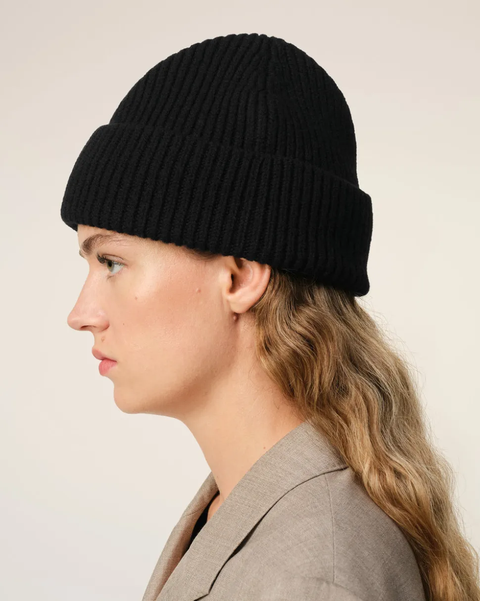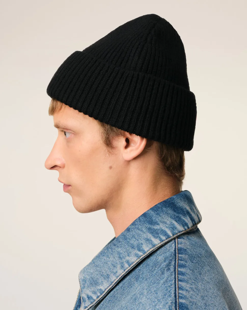 Bonnet en maille laine mérinos feutrée.