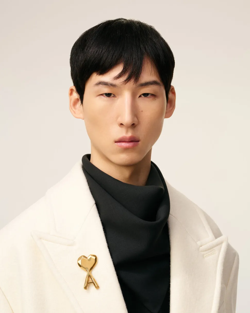 Broche martelée Ami de Coeur en laiton plaqué or.
