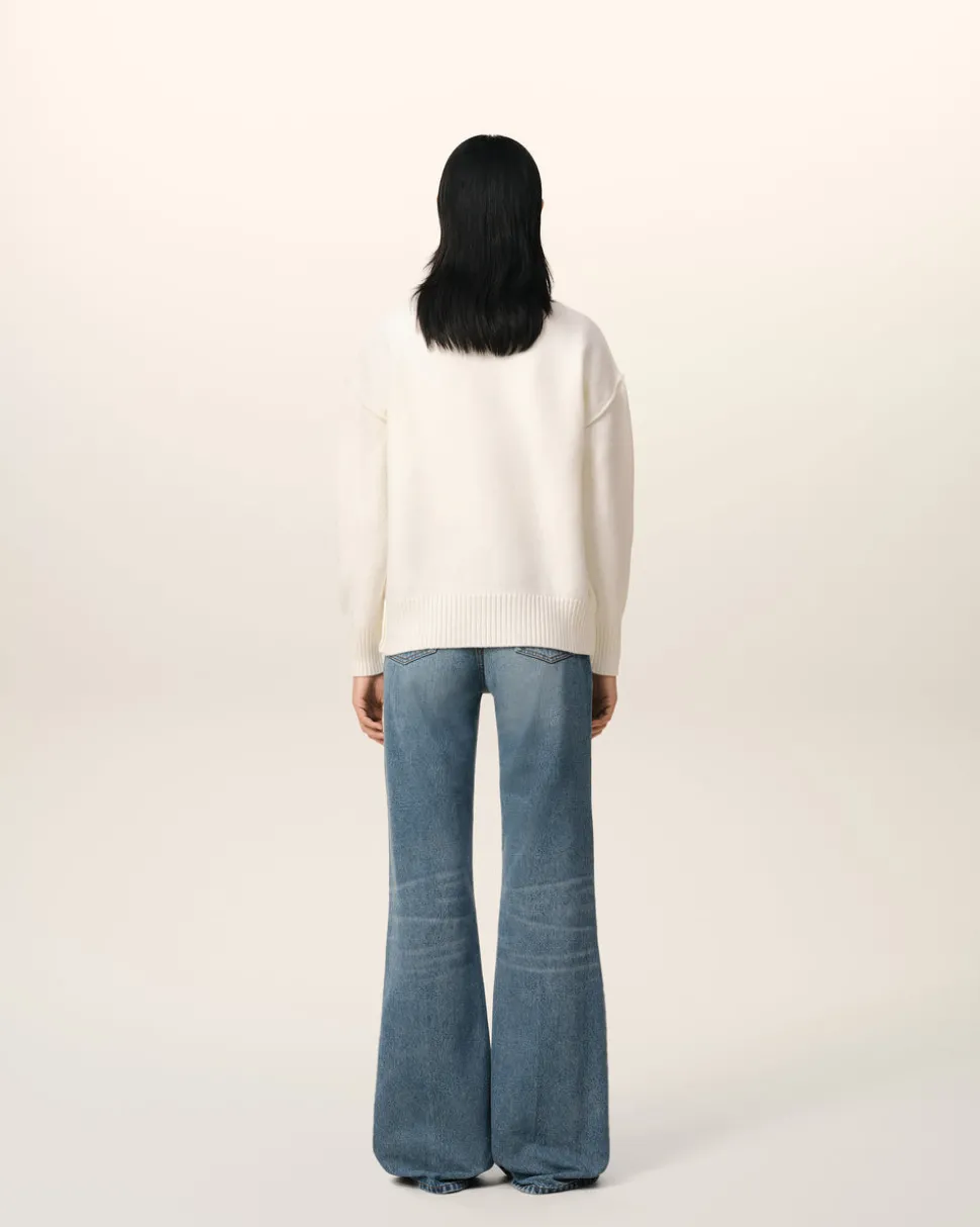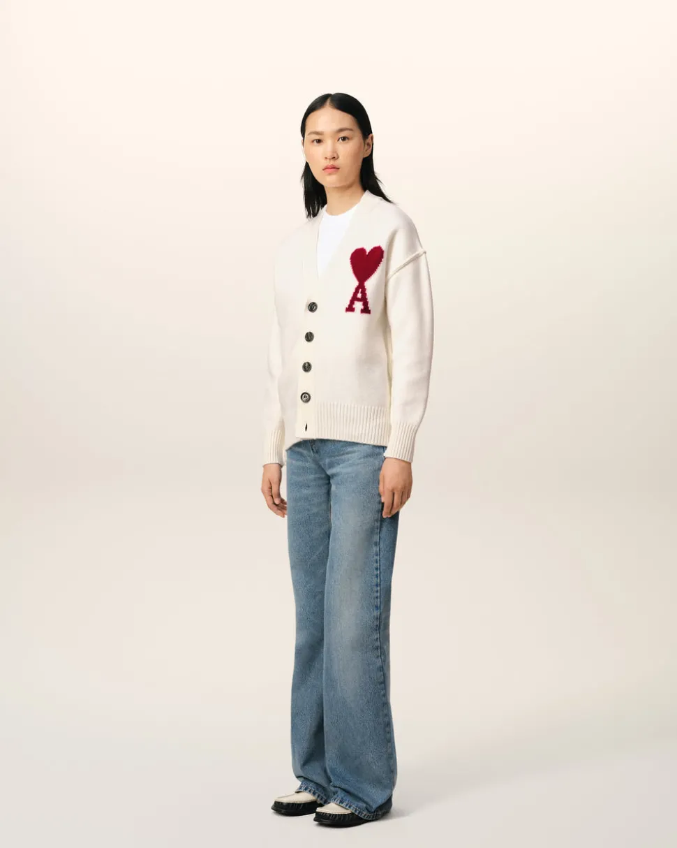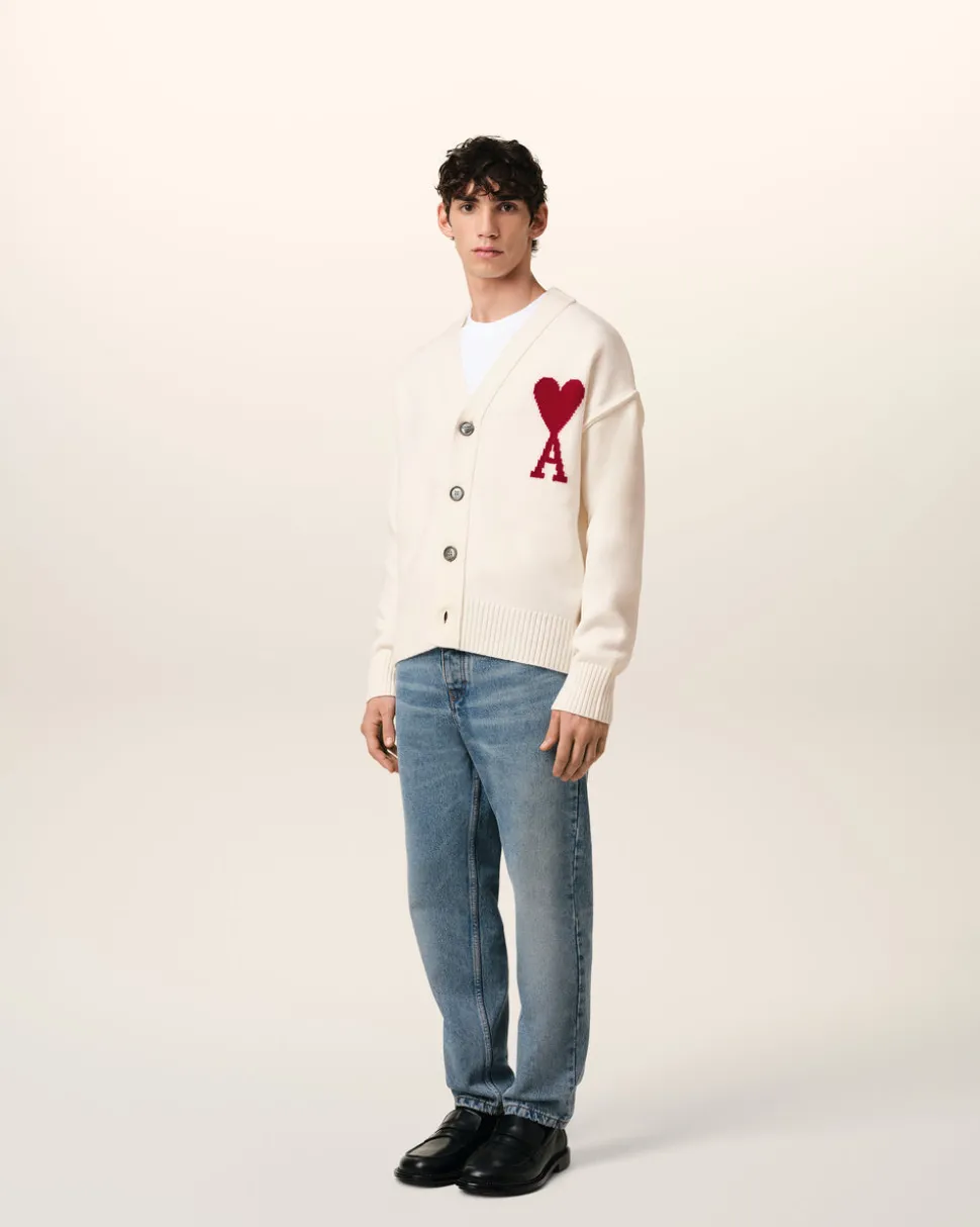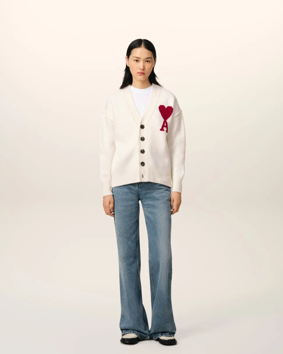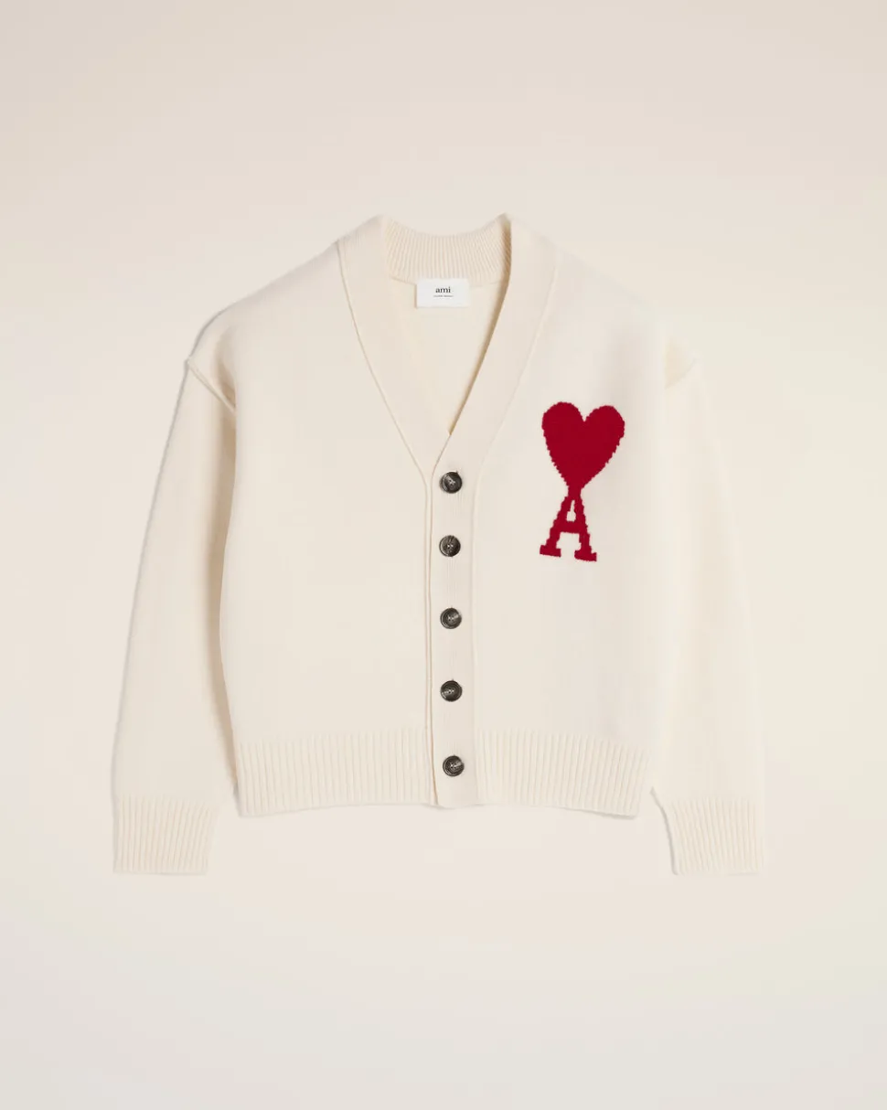 Logo Ami de Coeur rouge tricoté en intarsia sur la poitrine