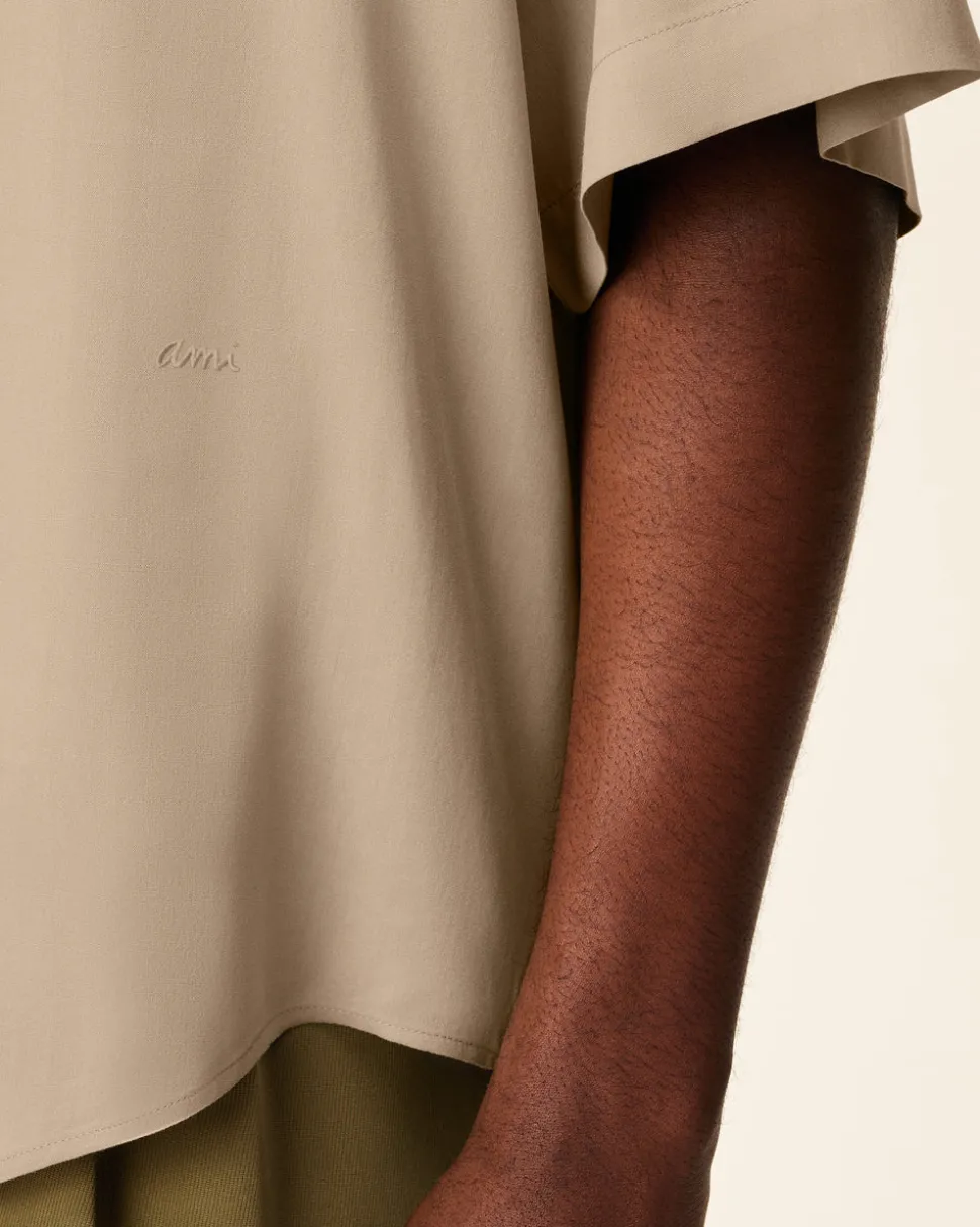 « ami » en italique brodé ton sur ton en bas de corps côté gauche au porté