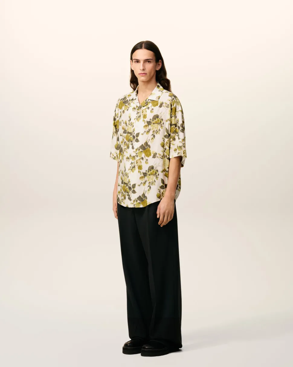 Chemise manches courtes en viscose imprimée fleurs.