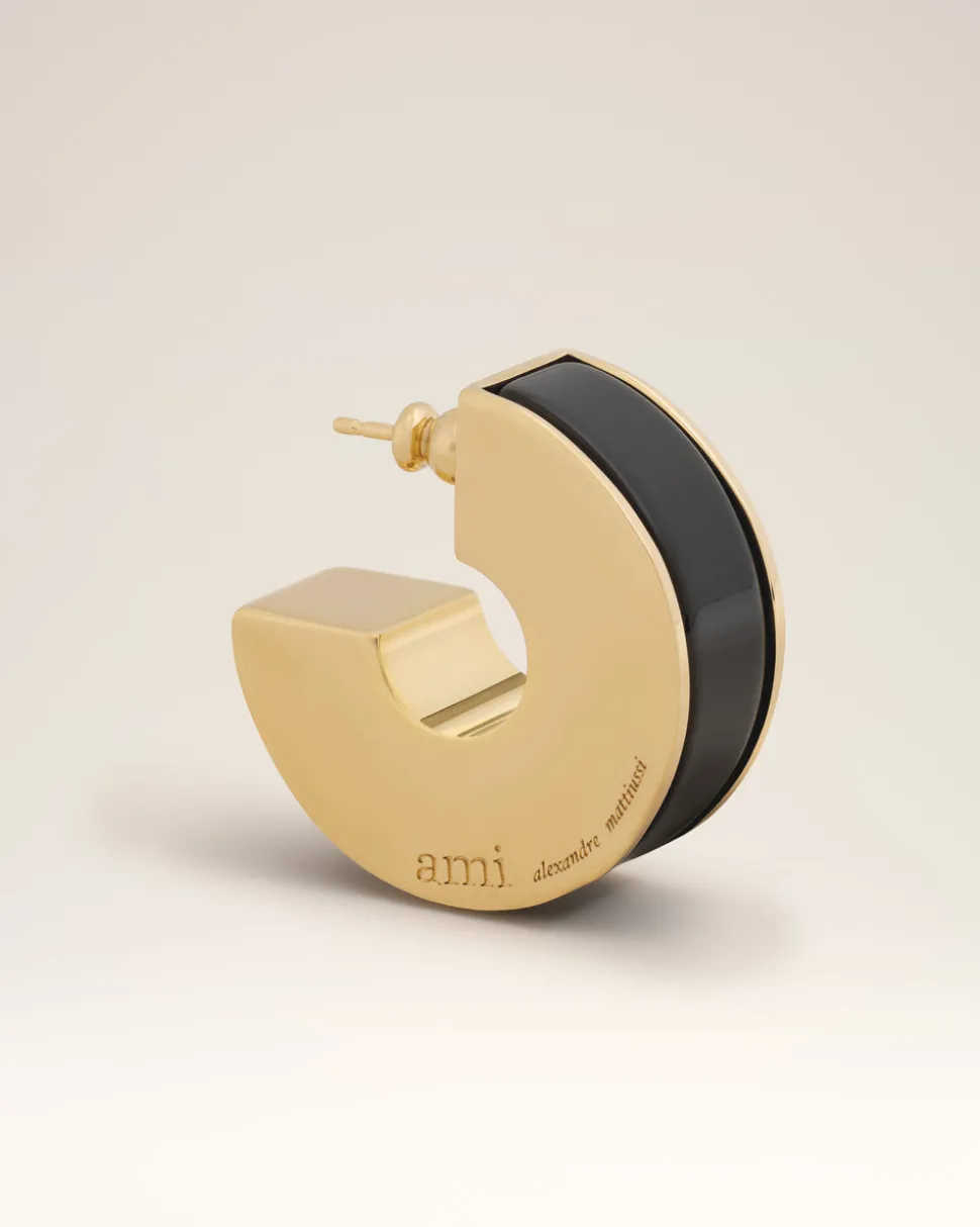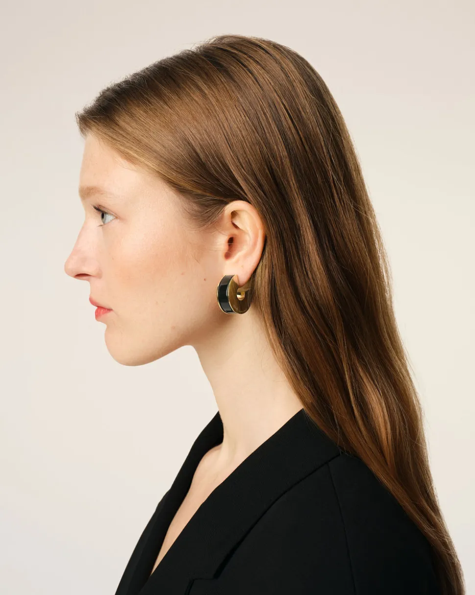 Boucles d’oreilles en laiton plaqué or et résine brillante.