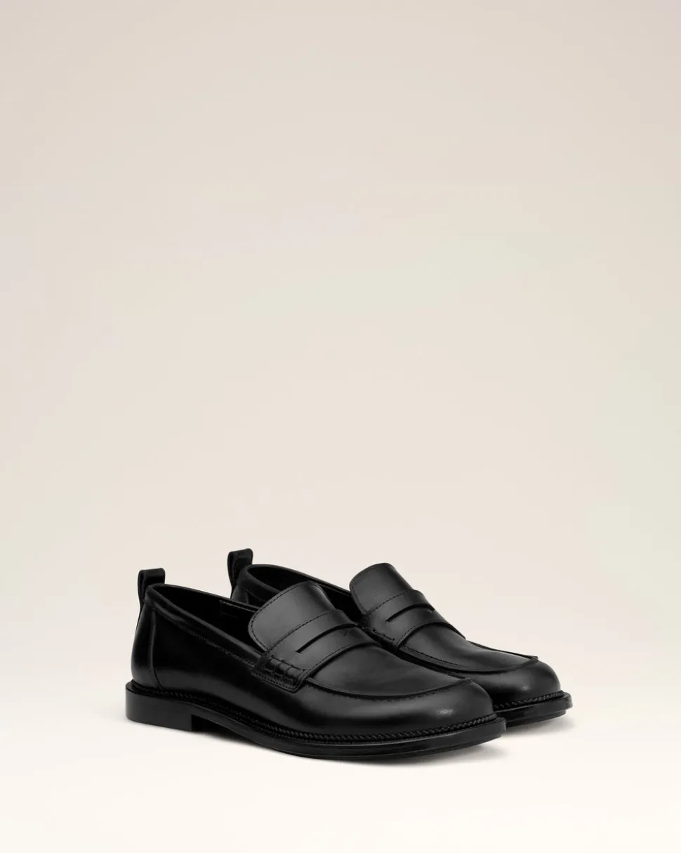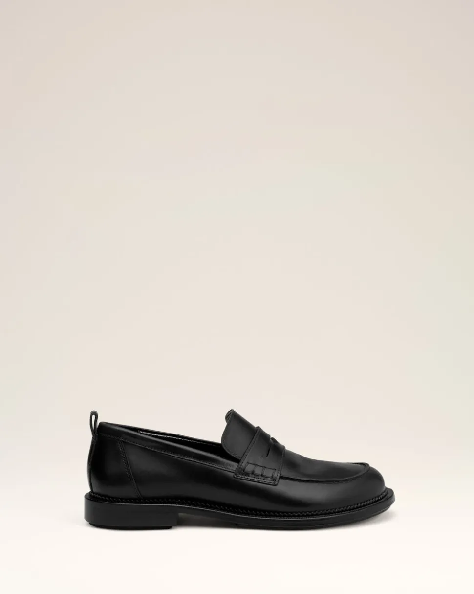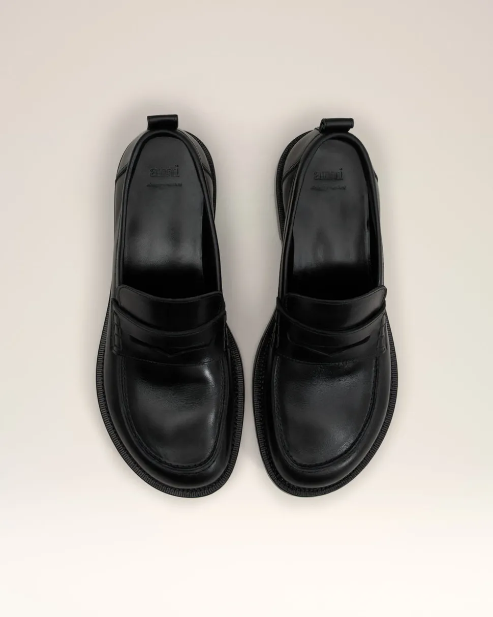 Moccassins à bout anatomique en cuir lisse tannage végétal.