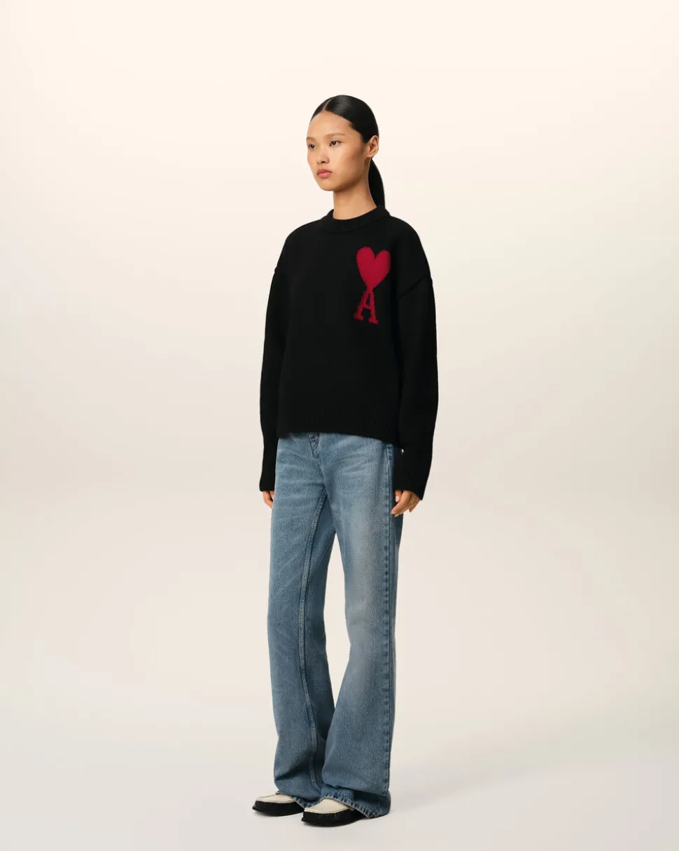 Logo Ami de Coeur rouge tricoté en intarsia sur la poitrine