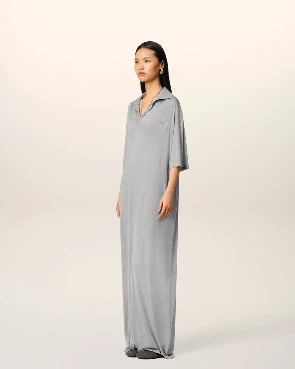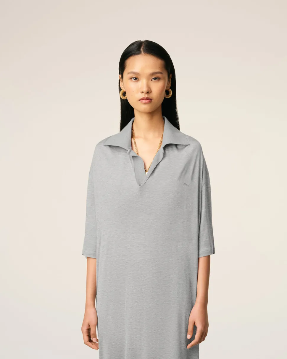 Robe polo longue en jersey mercerisé coton et soie.