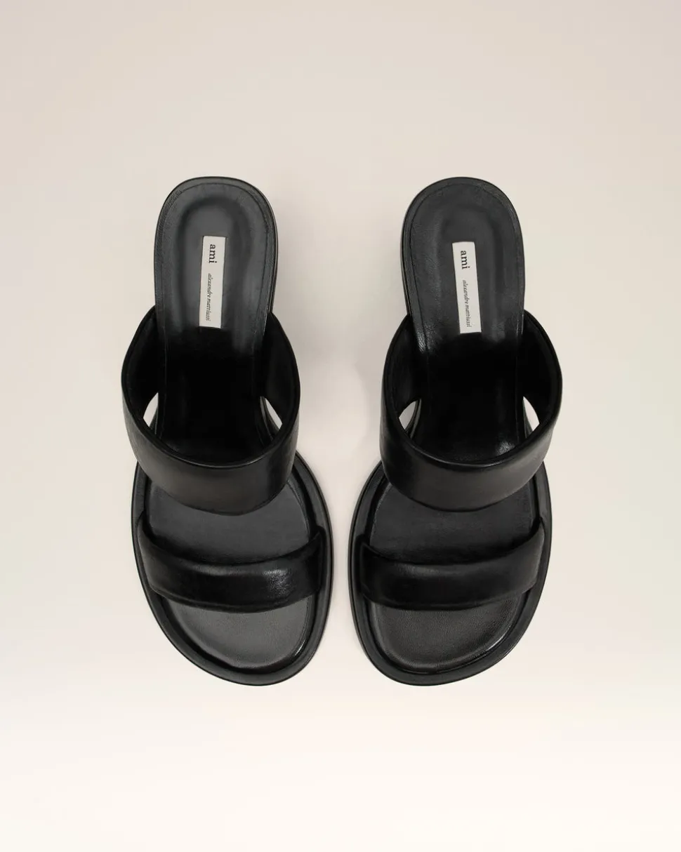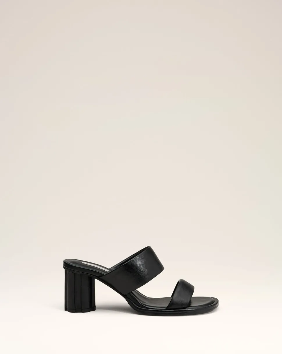 Sandales à bout anatomique en cuir crispy brillant.